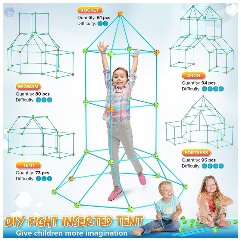 - More Accessories & bigger size: Compared to other common fort building kits, the large size and more accessories design of our fort kit can accommodate 3-4 kids and build more than 2 shapes at once, such as castles, rockets, tents, houses, igloos, tunnels. giving them more playability.